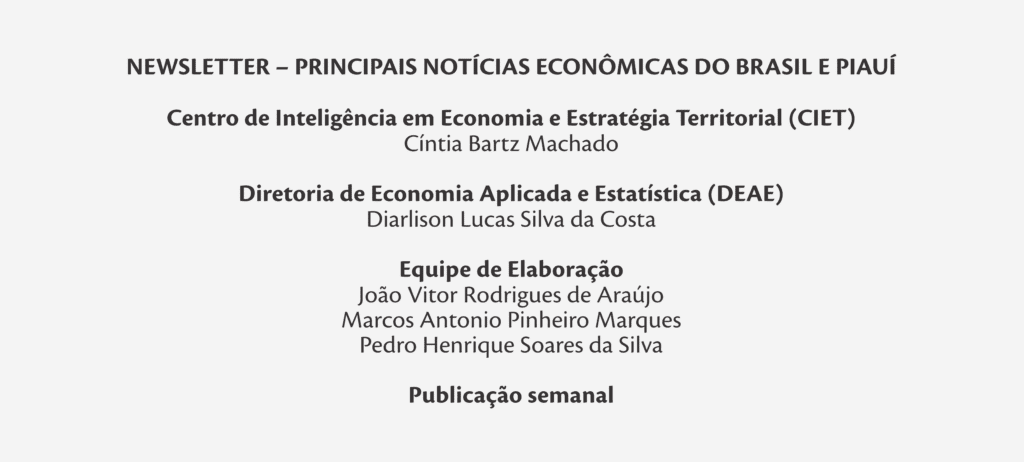 No setor externo, a expectativa é de superávit comercial de US$ 70 bilhões e déficit em conta corrente de US$ 66,8 bilhões. Já no campo fiscal, permanecem as projeções de déficit primário de 0,50% do PIB e dívida líquida em torno de 69,9% do PIB, mantendo o cenário de crescimento moderado.